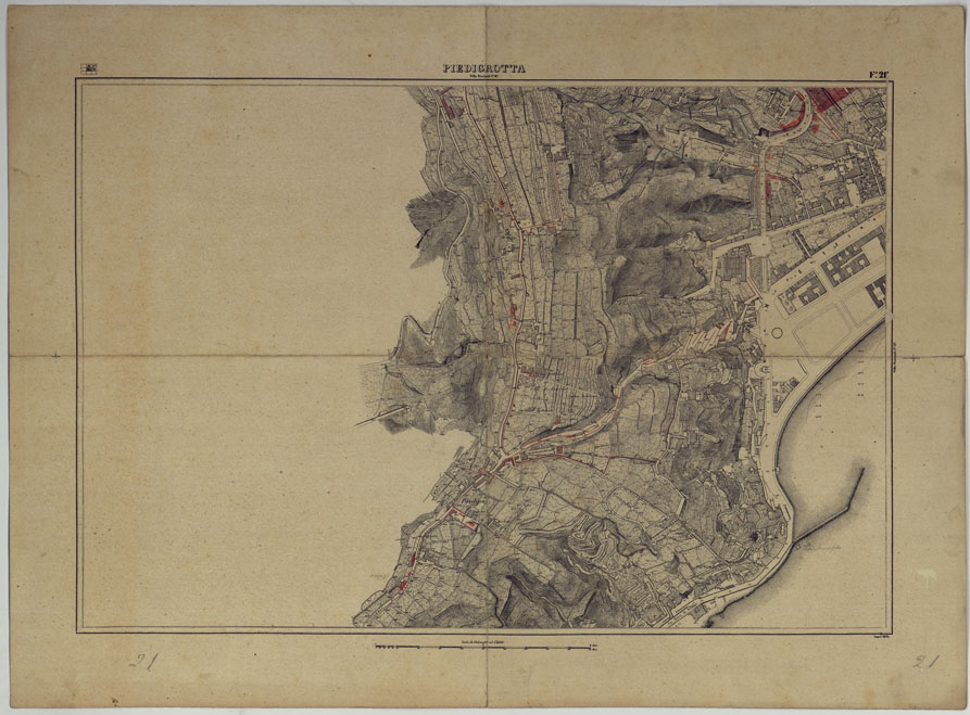 PIANTA TOPOGRAFICA DELLA CITTA' DI NAPOLI ALLA SCALA DI 1:4.000 EDIZIONE CON APPROVAZIONE PER AGGIORNAMENTI CATASTALI - FOGLIO 21 PIEDIGROTTA.