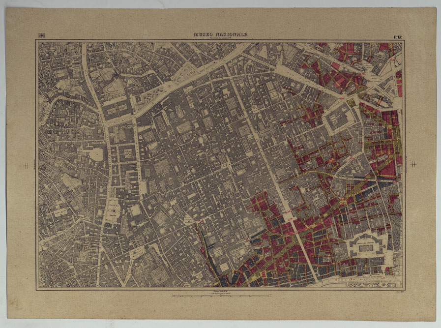 PIANTA TOPOGRAFICA DELLA CITTA' DI NAPOLI ALLA SCALA DI 1:4.000 EDIZIONE CON APPROVAZIONE PER AGGIORNAMENTI CATASTALI - FOGLIO 13 MUSEO NAZIONALE.