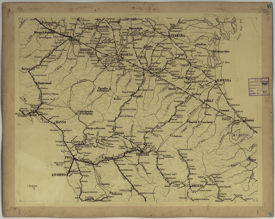CARTA DELLE FERROVIE E LINEE DI NAVIGAZIONE DEL REGNO D'ITALIA - Foglio VI
