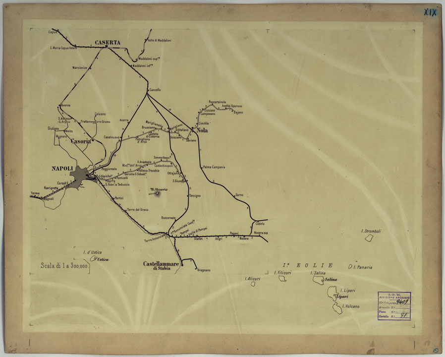 CARTA DELLE FERROVIE E LINEE DI NAVIGAZIONE DEL REGNO D'ITALIA - Foglio XIX
