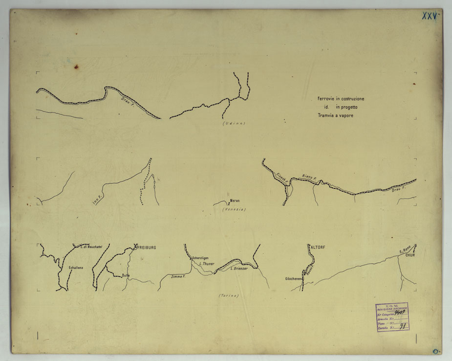 CARTA DELLE FERROVIE E LINEE DI NAVIGAZIONE DEL REGNO D'ITALIA - Foglio XXV