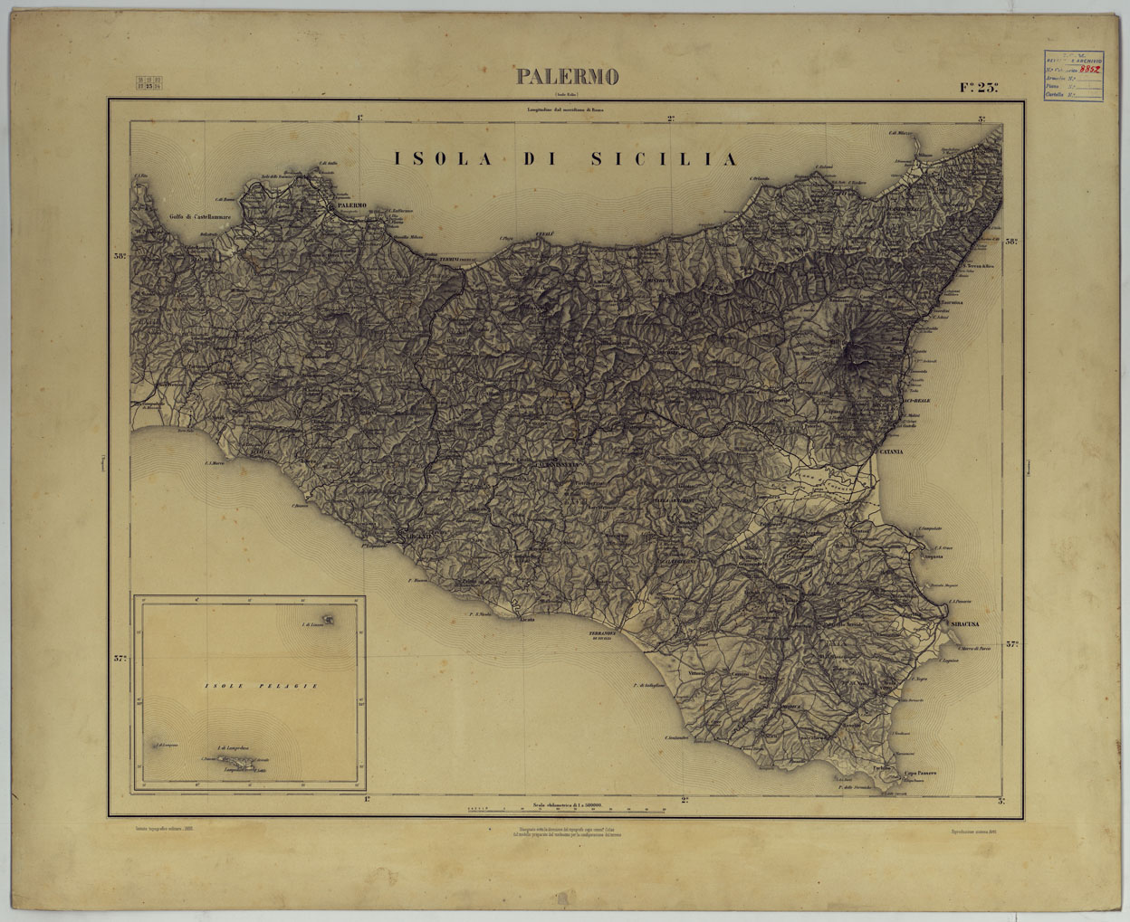 Il governo del Regno, considerando inadeguati i disomogenei lavori preunitari affidò nel 1872 all´Istituto Topografico Militare (il quale assunse l´attuale denominazione nel 1882) l´esecuzione del progetto di rilevamento generale del territorio dello Stato e della formazione della nuova Carta Topografica d´Italia alla scala 1:100000. L´Istituto, formatosi dalla fusione dell´Ufficio Tecnico del Corpo di Stato Maggiore del Regno Sardo con gli Istituti e gli Uffici topografici e cartografici dei diversi stati esistenti nella penisola prima che si compisse la sua unità politica, ereditò il materiale scientifico e cartografico preunitario caratterizzandosi di fatto come il depositario e continuatore della scuola e della tradizione cartografica nazionale.