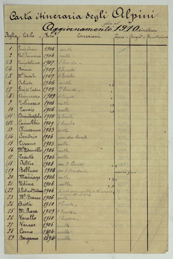 CARTA D' ITALIA DEGLI ALPINI - ELENCO DEGLI AGGIORNAMENTI