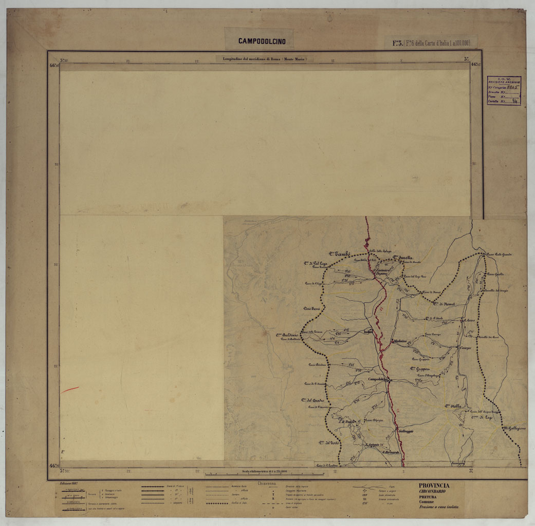 I rilevamenti topografici per la realizzazione della “Carta d´Italia&lrquo” iniziarono nel 1878: si trattava di un´opera così importante e lodevole che meritò la consapevole attenzione, non solo degli addetti ai lavori e delle categorie professionali coinvolte, ma anche delle più alte autorità del Regno.