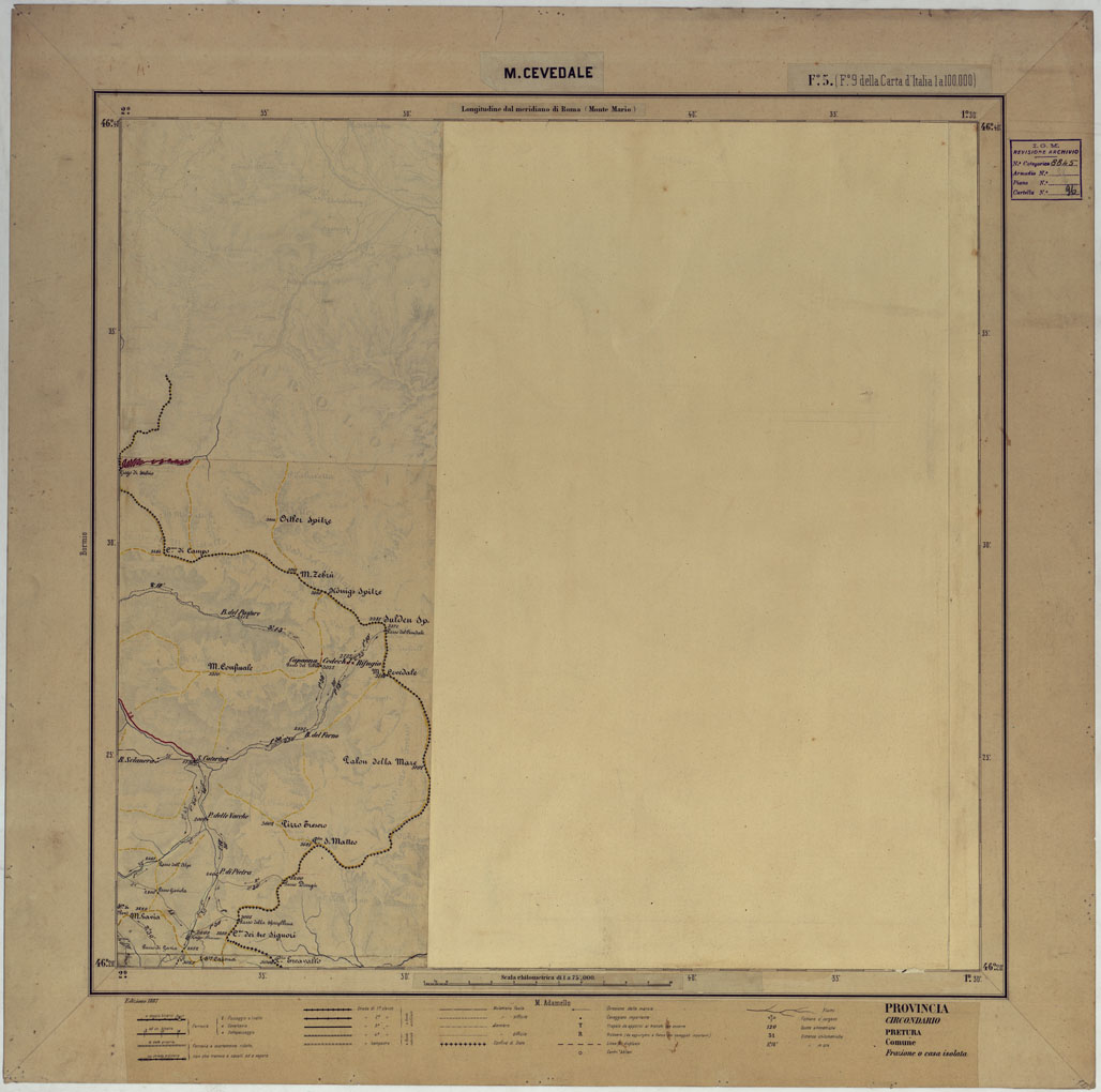 I rilevamenti topografici per la realizzazione della “Carta d´Italia&lrquo” iniziarono nel 1878: si trattava di un´opera così importante e lodevole che meritò la consapevole attenzione, non solo degli addetti ai lavori e delle categorie professionali coinvolte, ma anche delle più alte autorità del Regno.
