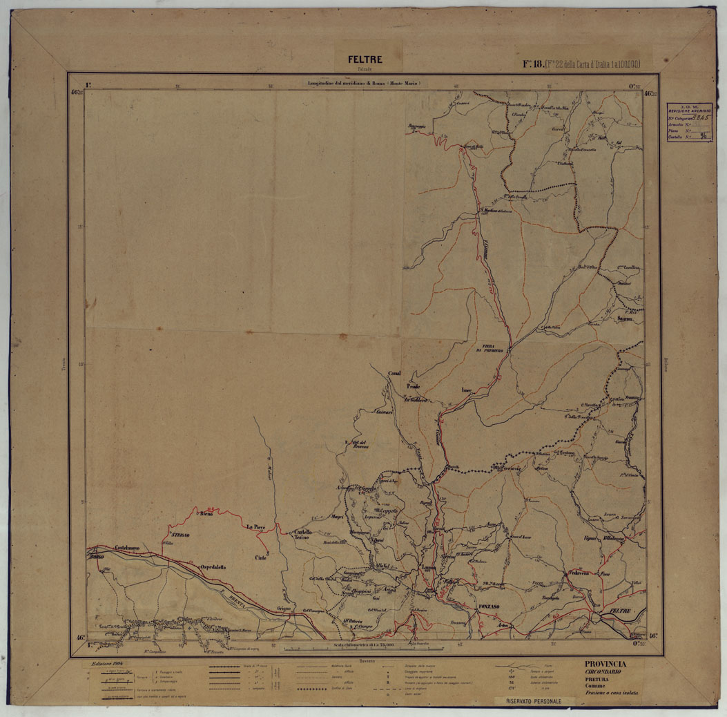 CARTA D'ITALIA DEGLI ALPINI - 2° Copia FELTRE Foglio n. 18