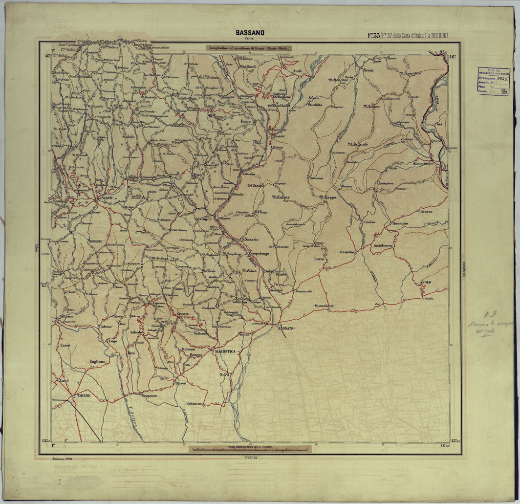 CARTA D'ITALIA DEGLI ALPINI - 2° Copia BASSANO Foglio n. 33