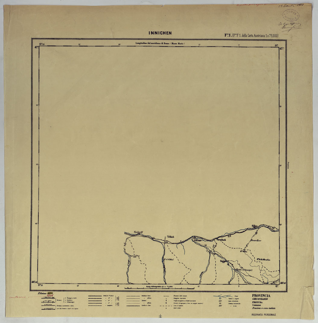 CARTA ITINERARIA D'ITALIA PER GLI ALPINI NORMALI D'ARCHIVIO CON AGGIORNAMENTO FINO AL 1910 EDIZIONE COMPLETA ANNO 1906 - FOGLIO 1 INNICHEN.