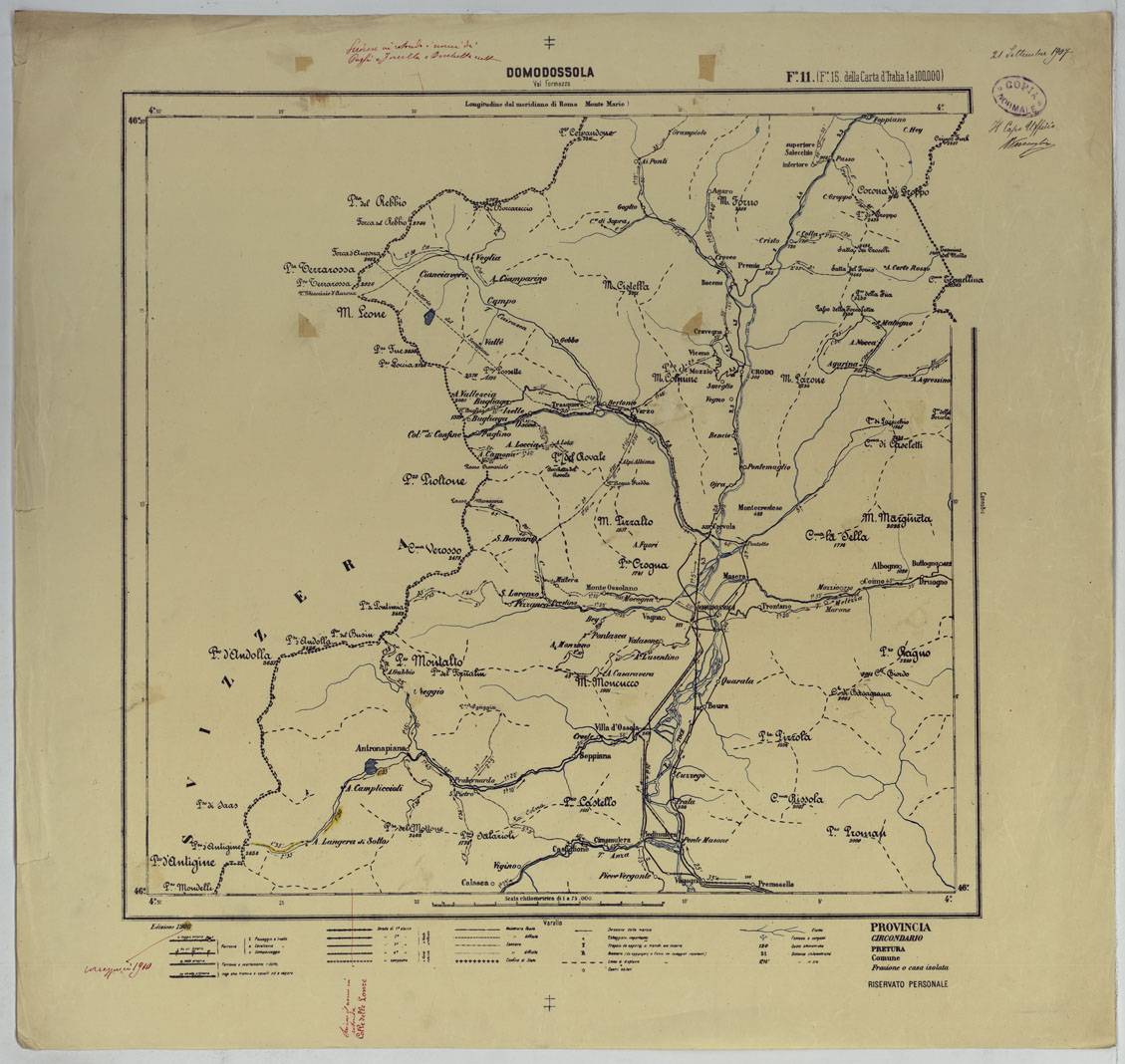 CARTA ITINERARIA D'ITALIA PER GLI ALPINI NORMALI D'ARCHIVIO CON AGGIORNAMENTO FINO AL 1910 EDIZIONE COMPLETA ANNO 1910 - FOGLIO 11 DOMODOSSOLA.