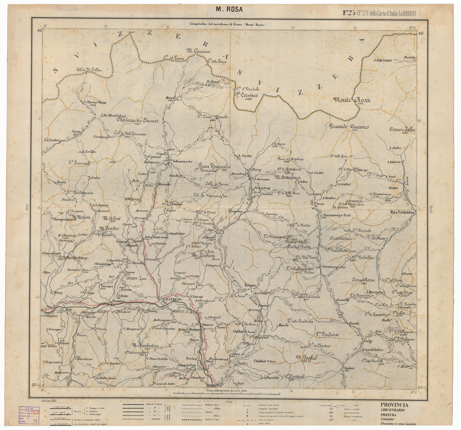 CARTA ITINERARIA D'ITALIA EDIZIONE 1887 - FOGLIO 25 M. ROSA