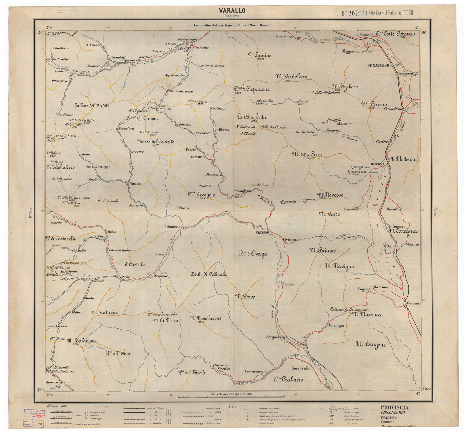 CARTA ITINERARIA D'ITALIA EDIZIONE 1887 - FOGLIO 26 VARALLO