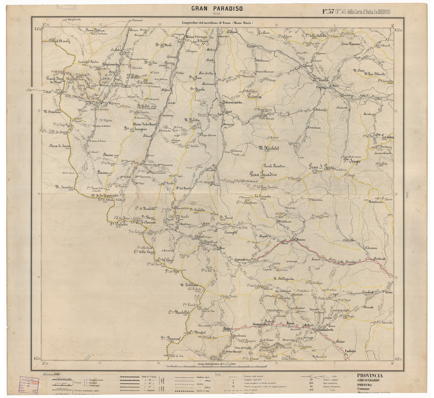 CARTA ITINERARIA D'ITALIA EDIZIONE 1906 - FOGLIO 37 GRAN PARADISO