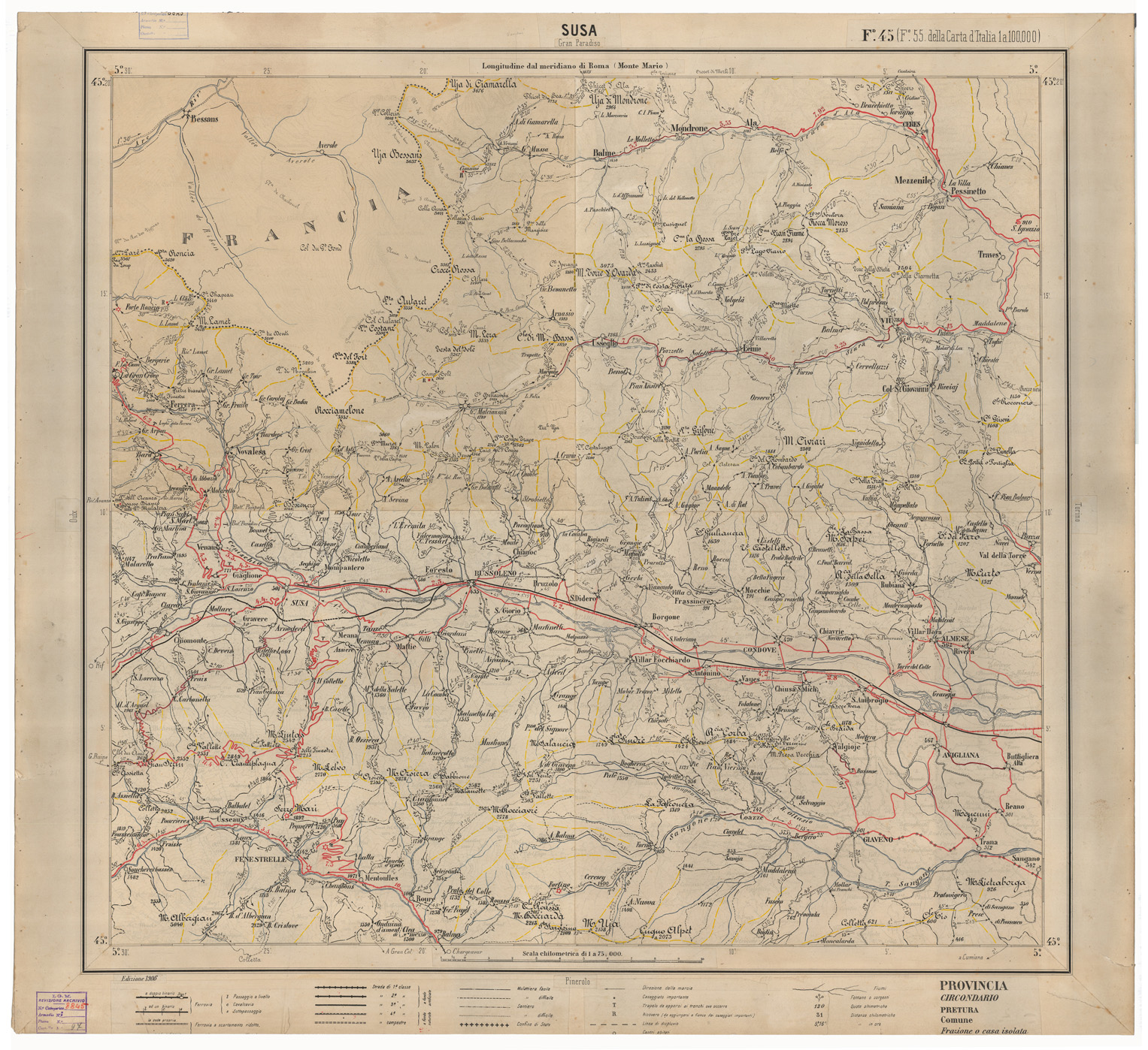 CARTA ITINERARIA D'ITALIA EDIZIONE 1906 FOGLIO 45 SUSA