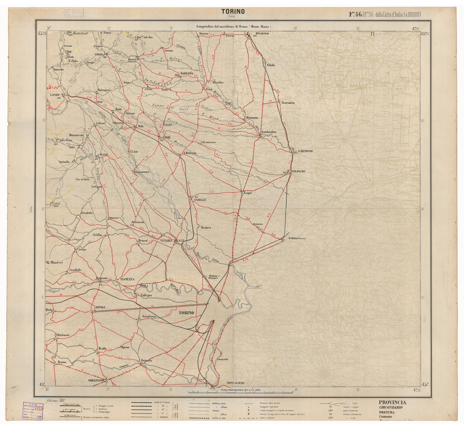 CARTA ITINERARIA D'ITALIA EDIZIONE 1887 - FOGLIO 46 TORINO
