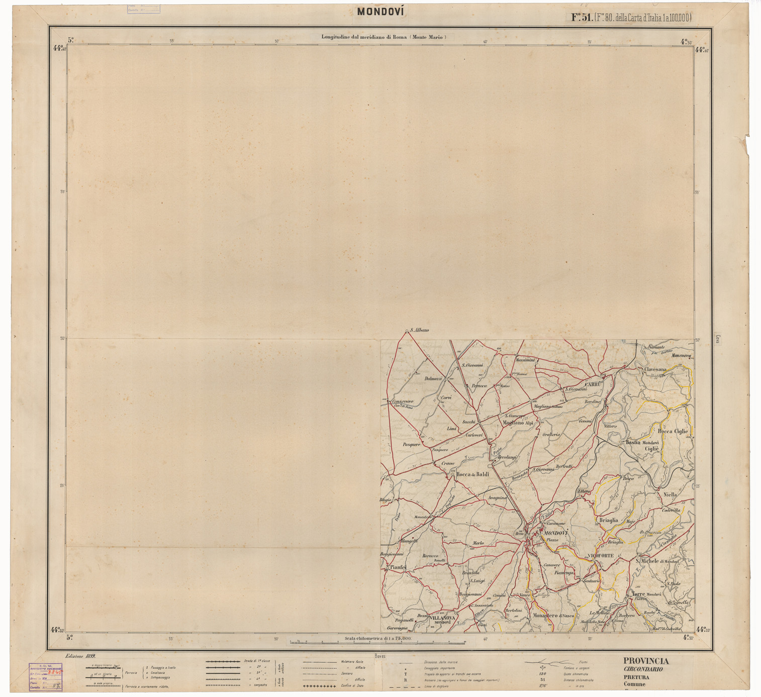 CARTA ITINERARIA D'ITALIA EDIZIONE 1899 - FOGLIO 51 MONDOVI'