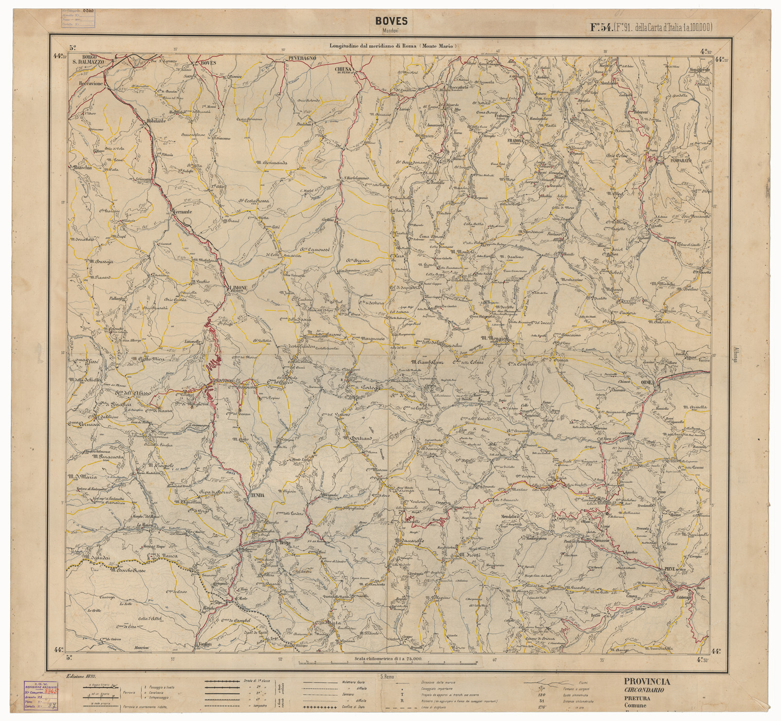 CARTA ITINERARIA D'ITALIA EDIZIONE 1892 - FOGLIO 54 BOVES