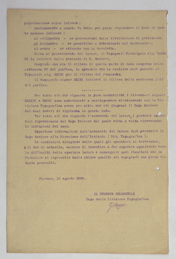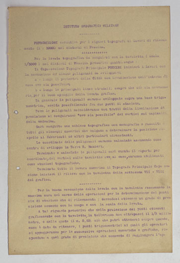 I rilevamenti topografici per la realizzazione della “Carta d´Italia&lrquo” iniziarono nel 1878: si trattava di un´opera così importante e lodevole che meritò la consapevole attenzione, non solo degli addetti ai lavori e delle categorie professionali coinvolte, ma anche delle più alte autorità del Regno.