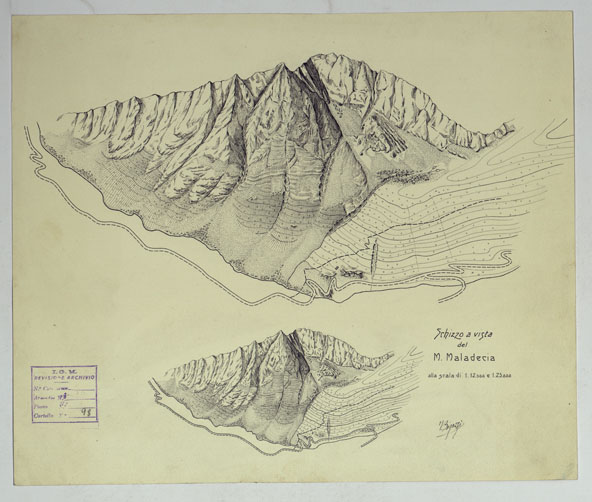 "Schizzo a vista del M. Maladecia. Alla scala di 1:12.500 e 1:25.000. "