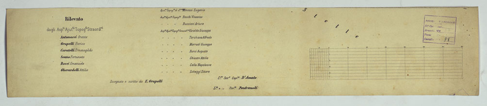 I rilevamenti topografici per la realizzazione della “Carta d´Italia&lrquo” iniziarono nel 1878: si trattava di un´opera così importante e lodevole che meritò la consapevole attenzione, non solo degli addetti ai lavori e delle categorie professionali coinvolte, ma anche delle più alte autorità del Regno.