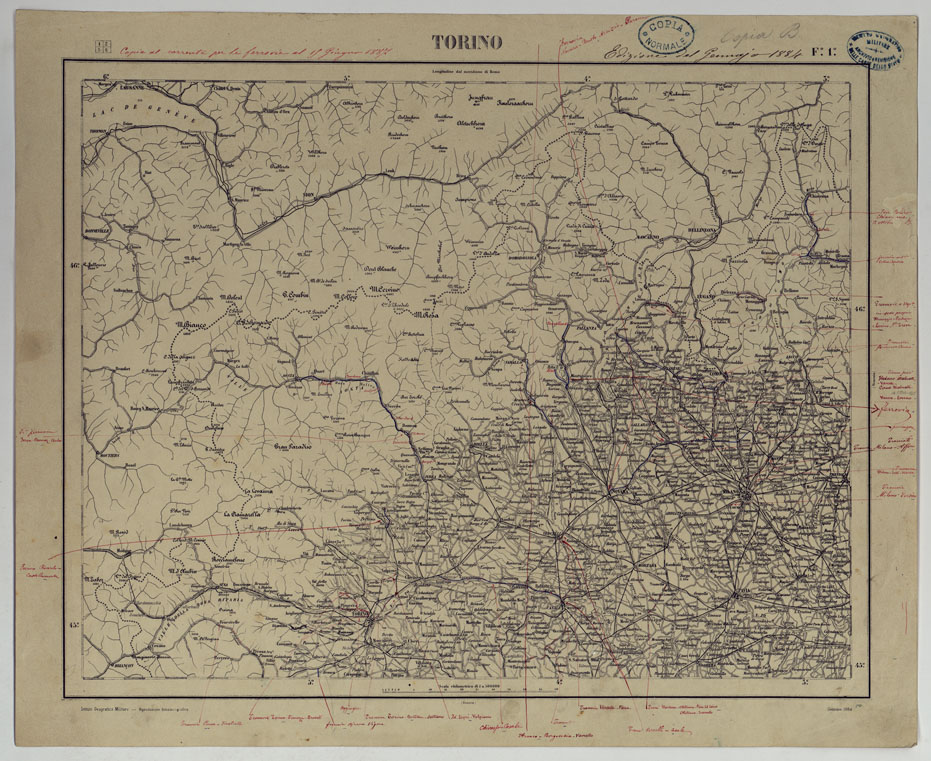 CARTA D'ITALIA COPIA AL CORRENTE PER LE FERROVIE - F°.1 TORINO.