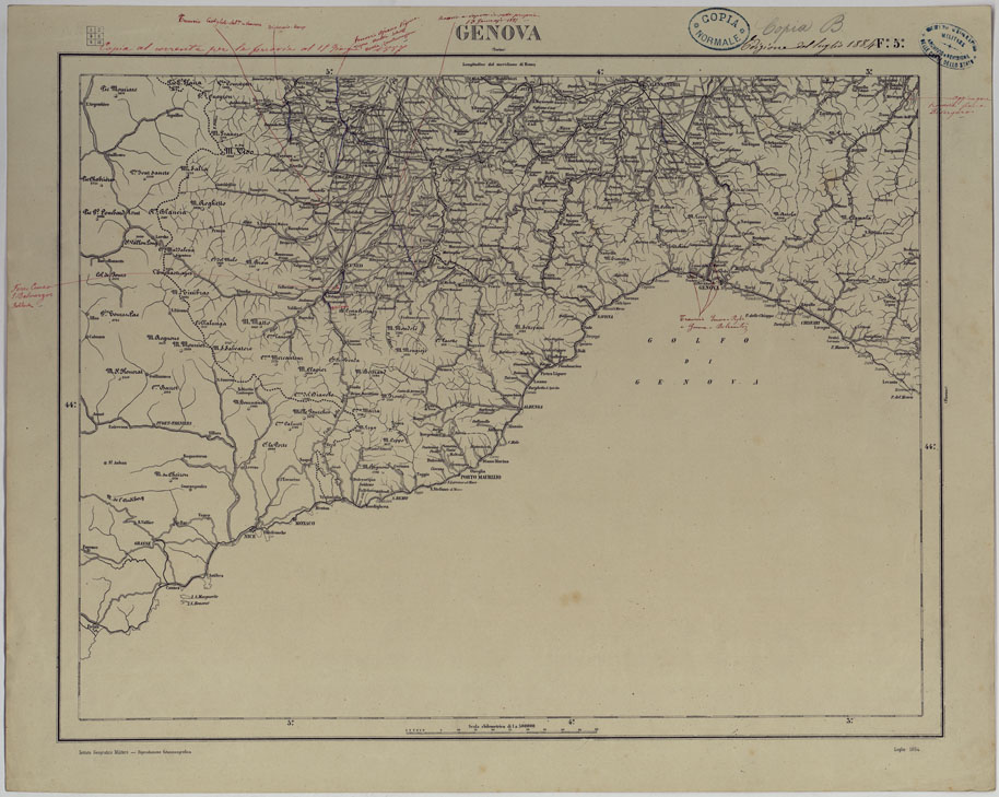 CARTA D'ITALIA COPIA AL CORRENTE PER LE FERROVIE - F°.5 GENOVA.