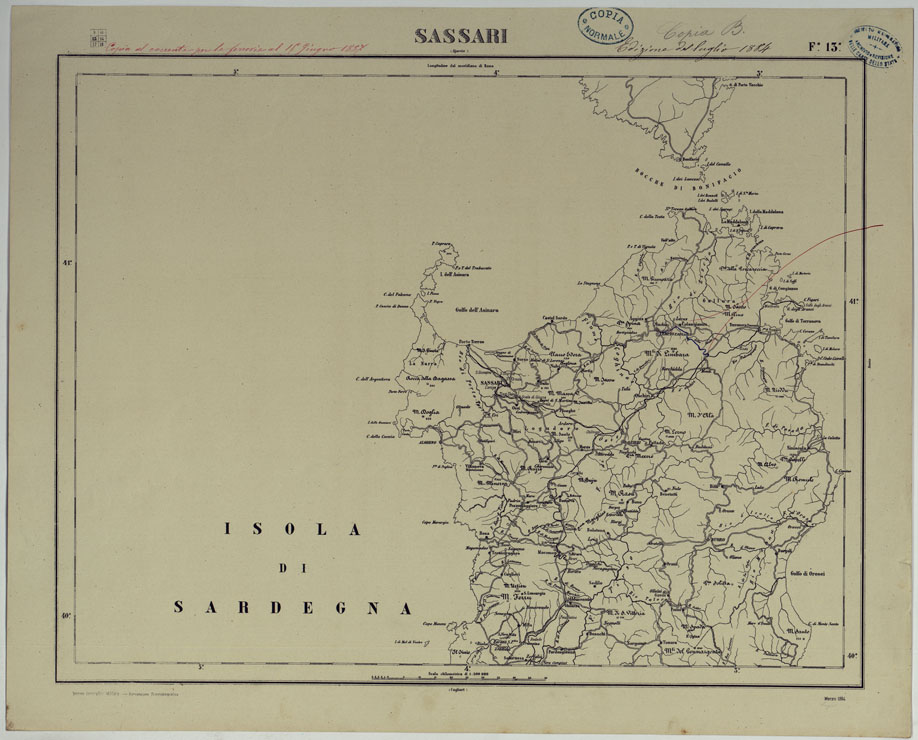 CARTA D'ITALIA COPIA AL CORRENTE PER LE FERROVIE - F°.13 SASSARI.