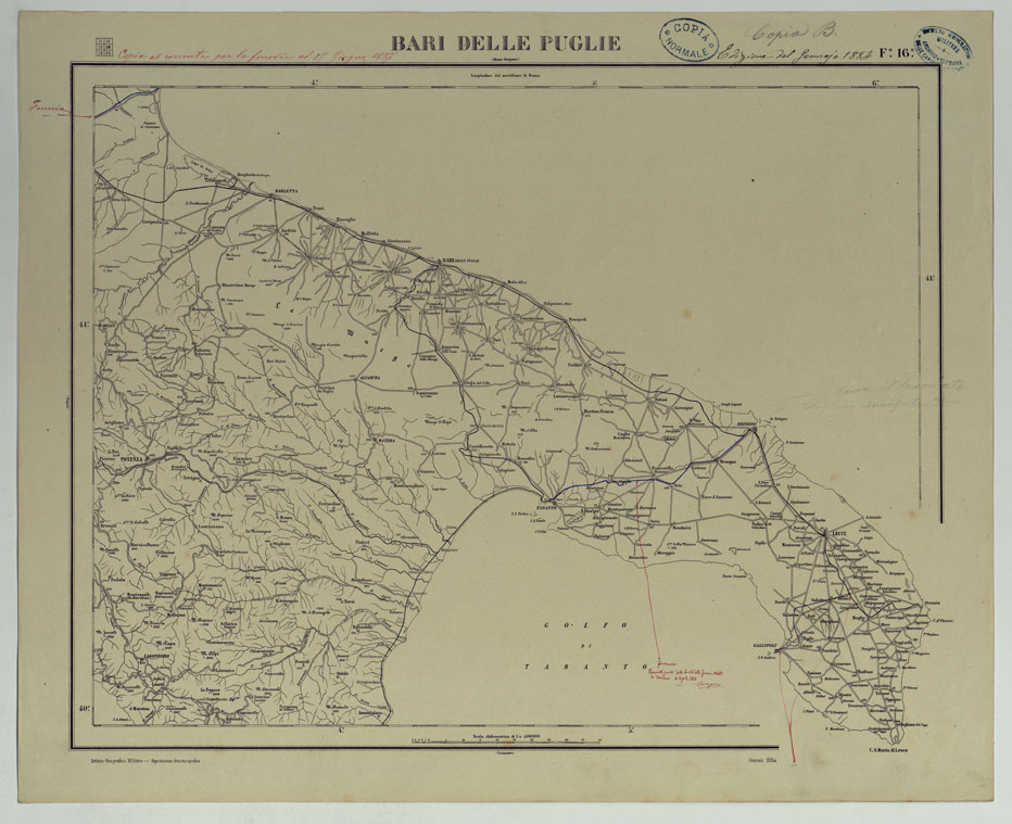 CARTA D'ITALIA COPIA AL CORRENTE PER LE FERROVIE - F°.16 BARI DELLE PUGLIE.