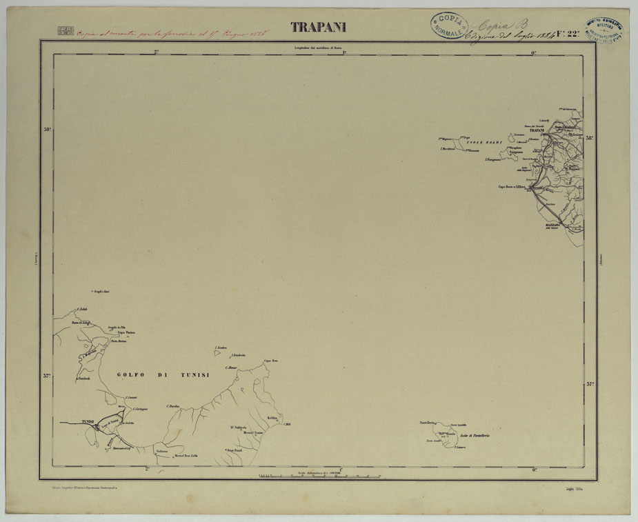 CARTA D'ITALIA COPIA AL CORRENTE PER LE FERROVIE - F°.22 TRAPANI.
