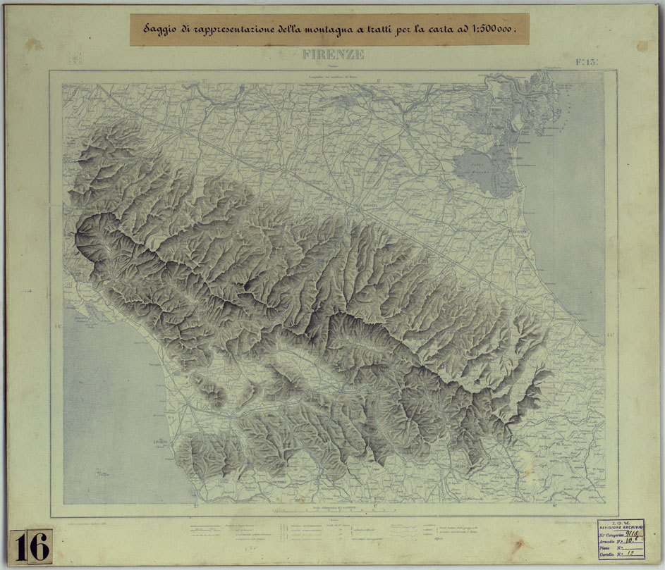 SAGGIO DI PRESENTAZIONE DELLA MONTAGNA A TRATTI PER LA CARTA AL 1:500.000 - FOGLIO 13 FIRENZE.