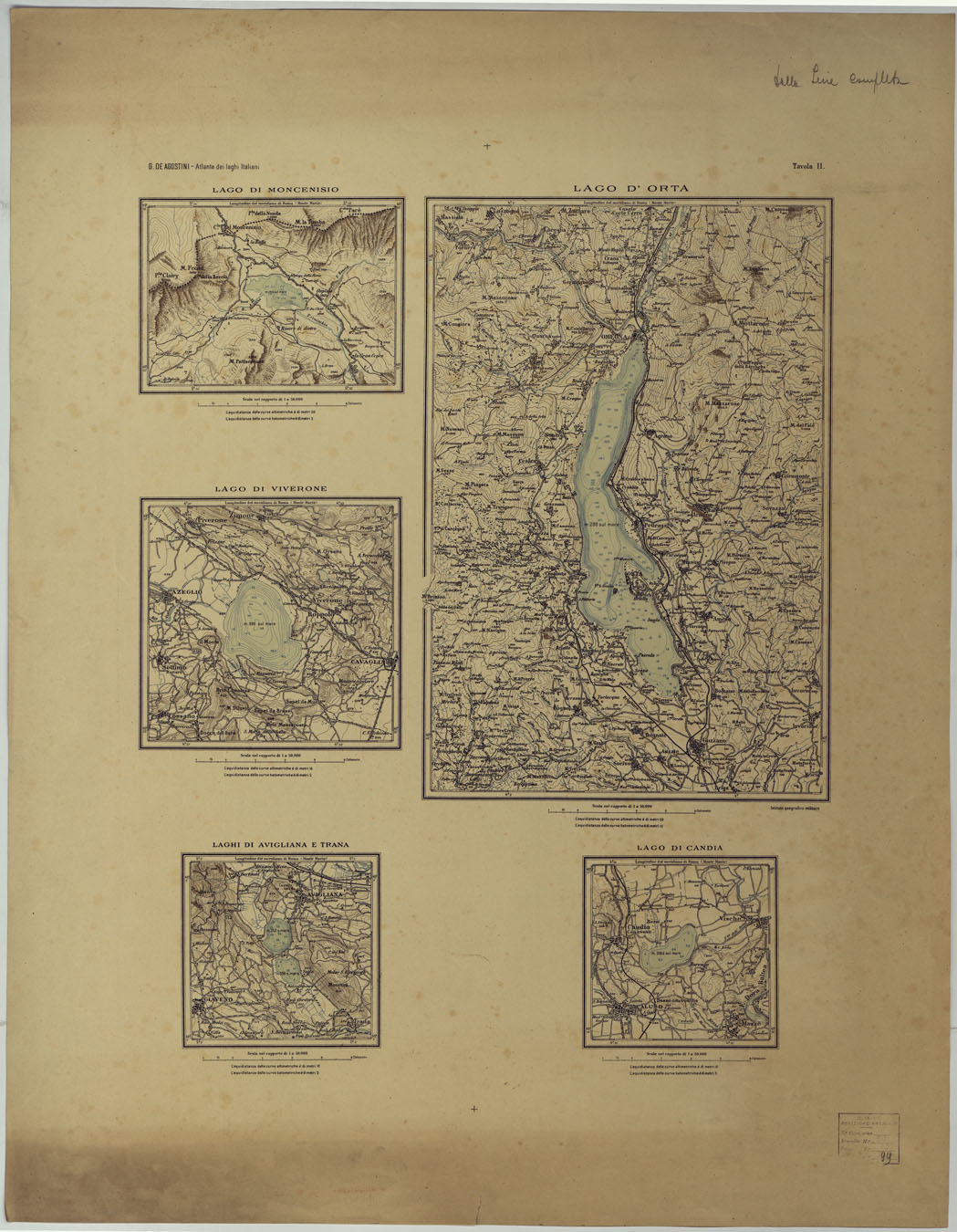 ATLANTE DEI LAGHI ITALIANI TAV II LAGO DI MONCENISIO D'ORTA DI CANDIA DI AVIGLIANA E TRANA DI VIVERONE