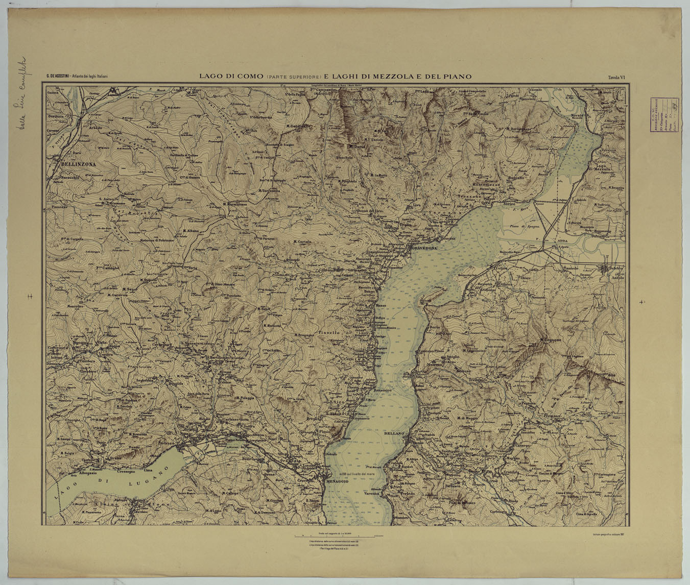 ATLANTE DEI LAGHI ITALIANI TAV VI LAGO DI COMO (PARTE SUPERIORE) E LAGHI DI MEZZOLA E DEL PIANO