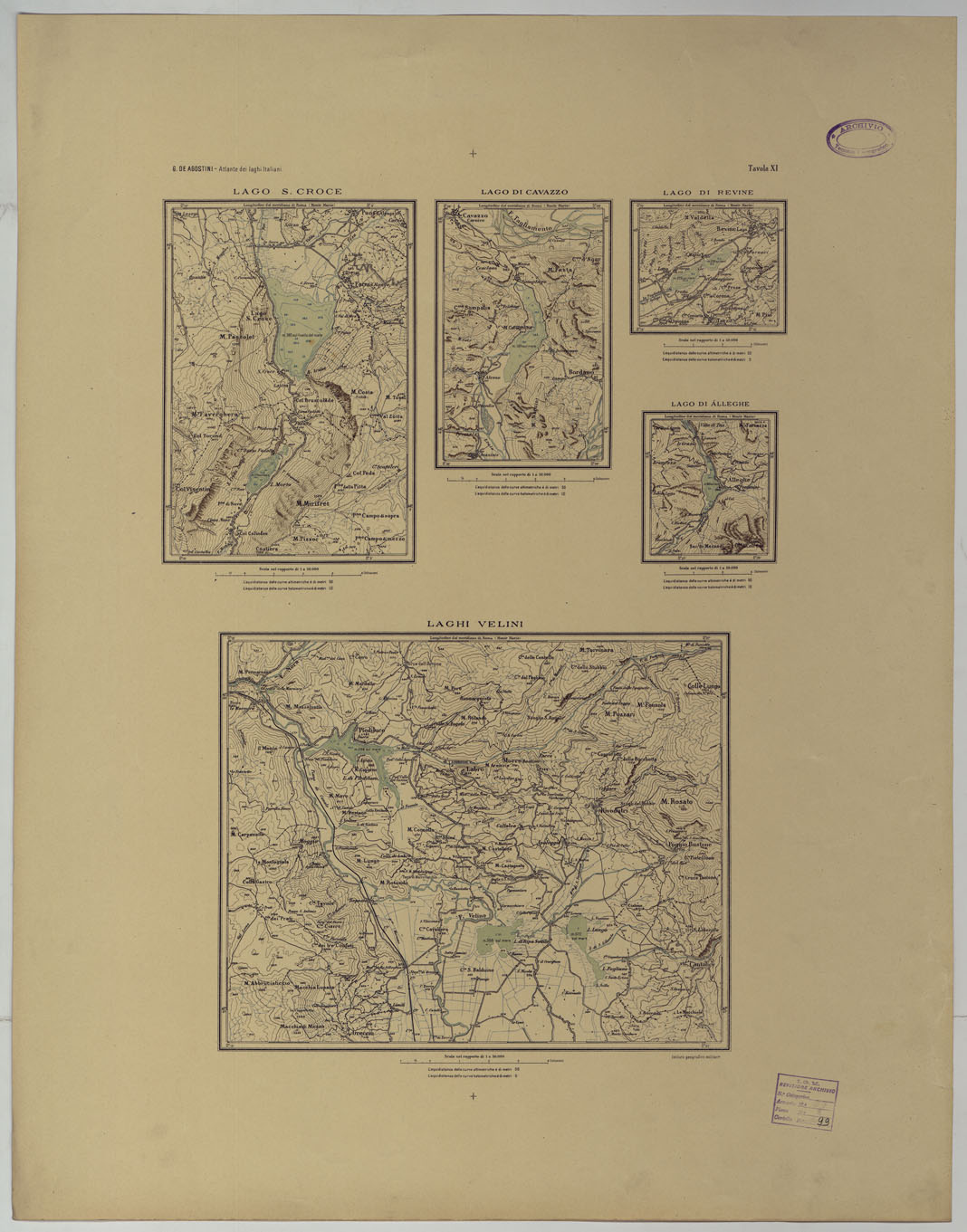 ATLANTE DEI LAGHI ITALIANI TAV XI 2° COPIA LAGO S. CROCE DI CAVAZZO DI REVINE DI ALLEGHE E LAGHI VELINI