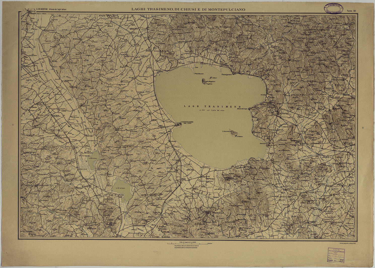 ATLANTE DEI LAGHI ITALIANI TAV XII 2° COPIA LAGHI TRASIMENO DI CHIUSI E DI MONTEPULCIANO