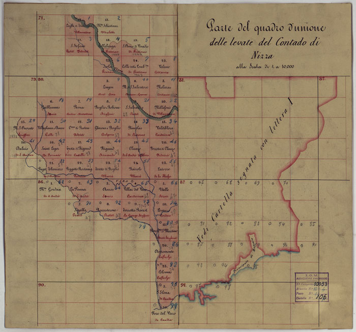 TERRITORIO DELLA CONTEA DI NIZZA - PARTE DEL QUADRO D'UNIONE DELLE LEVATE DEL CONTADO DI NIZZA ALLA SCALA DI 1 A 10.000.