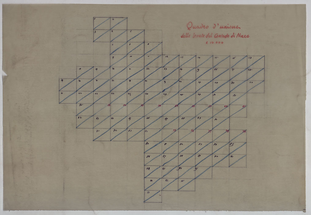 TERRITORIO DELLA CONTEA DI NIZZA - PARTE DEL QUADRO D'UNIONE DELLE LEVATE DEL CONTADO DI NIZZA ALLA SCALA DI 1 A 10.000.