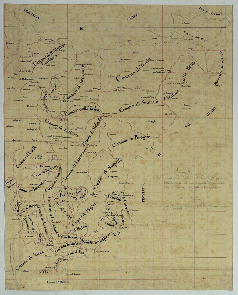 TERRITORIO DELLA CONTEA DI NIZZA - PERIMETRO DEI COMUNI DELLA PROVINCIA DI NIZZA.