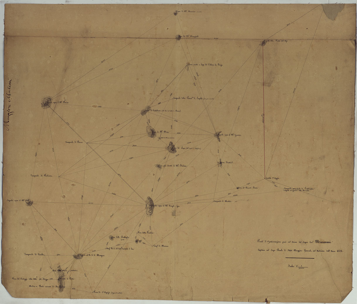 I rilevamenti topografici per la realizzazione della “Carta d´Italia&lrquo” iniziarono nel 1878: si trattava di un´opera così importante e lodevole che meritò la consapevole attenzione, non solo degli addetti ai lavori e delle categorie professionali coinvolte, ma anche delle più alte autorità del Regno.