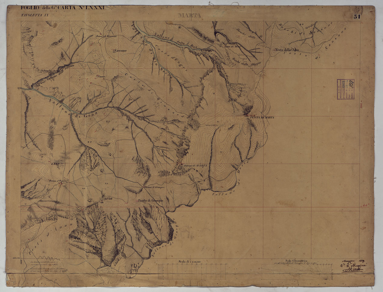 I rilevamenti topografici per la realizzazione della “Carta d´Italia&lrquo” iniziarono nel 1878: si trattava di un´opera così importante e lodevole che meritò la consapevole attenzione, non solo degli addetti ai lavori e delle categorie professionali coinvolte, ma anche delle più alte autorità del Regno.