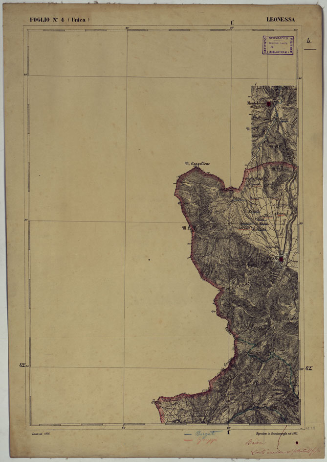 I rilevamenti topografici per la realizzazione della “Carta d´Italia&lrquo” iniziarono nel 1878: si trattava di un´opera così importante e lodevole che meritò la consapevole attenzione, non solo degli addetti ai lavori e delle categorie professionali coinvolte, ma anche delle più alte autorità del Regno.