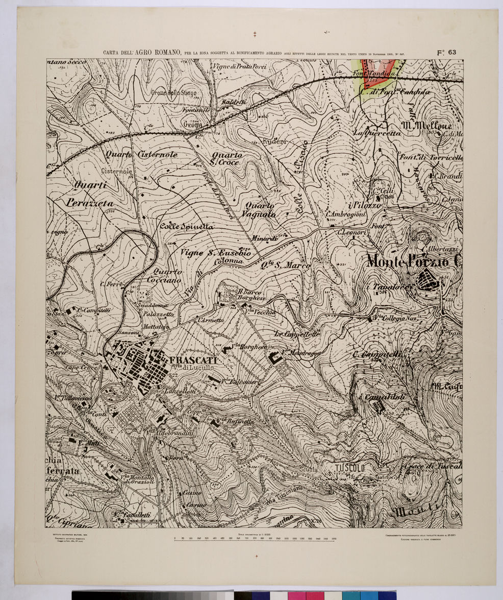 CARTA DELL'AGRO ROMANO NEL RAPPORTO DI 1:8.000 PER LA ZONA SOGGETTA AL BONIFICAMENTO AGRARIO AGLI EFFETTI DELLE LEGGI RIUNITE IN TESTO UNICO CON R.D. 10 NOVEMBRE 1905 N°647 - FOGLIO 63.