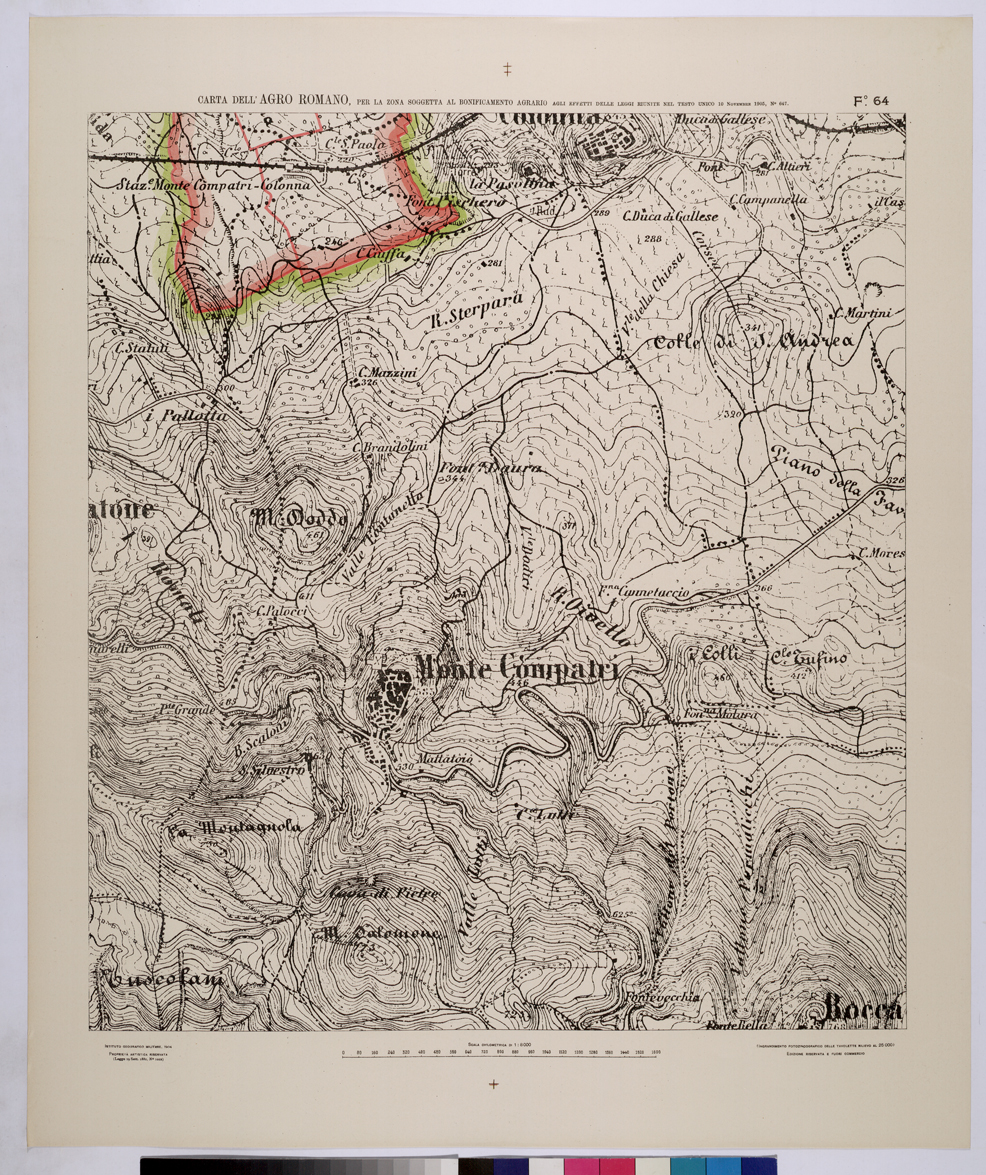 CARTA DELL'AGRO ROMANO NEL RAPPORTO DI 1:8.000 PER LA ZONA SOGGETTA AL BONIFICAMENTO AGRARIO AGLI EFFETTI DELLE LEGGI RIUNITE IN TESTO UNICO CON R.D. 10 NOVEMBRE 1905 N°647 - FOGLIO 64.