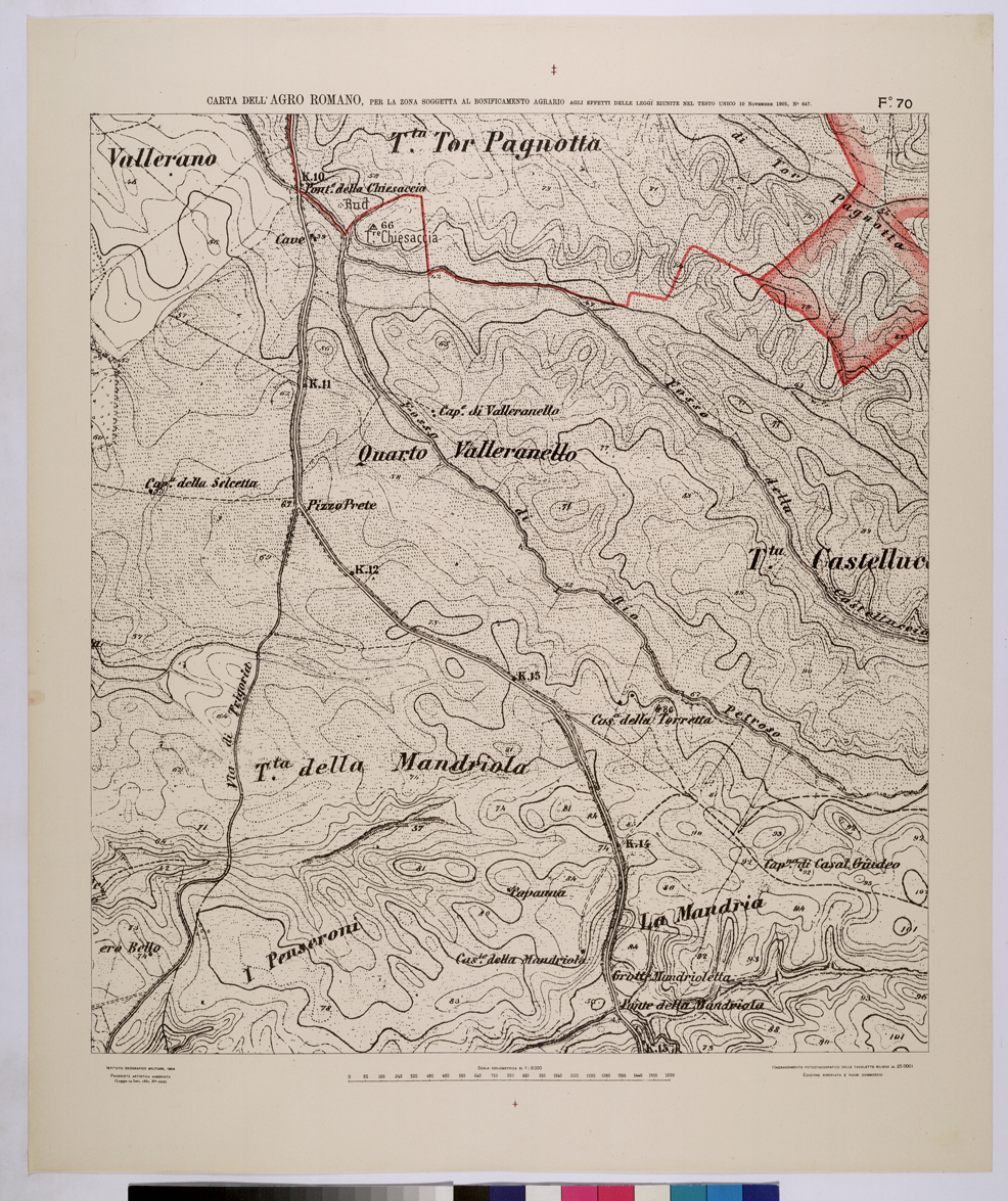 CARTA DELL'AGRO ROMANO NEL RAPPORTO DI 1:8.000 PER LA ZONA SOGGETTA AL BONIFICAMENTO AGRARIO AGLI EFFETTI DELLE LEGGI RIUNITE IN TESTO UNICO CON R.D. 10 NOVEMBRE 1905 N°647 - FOGLIO 70.