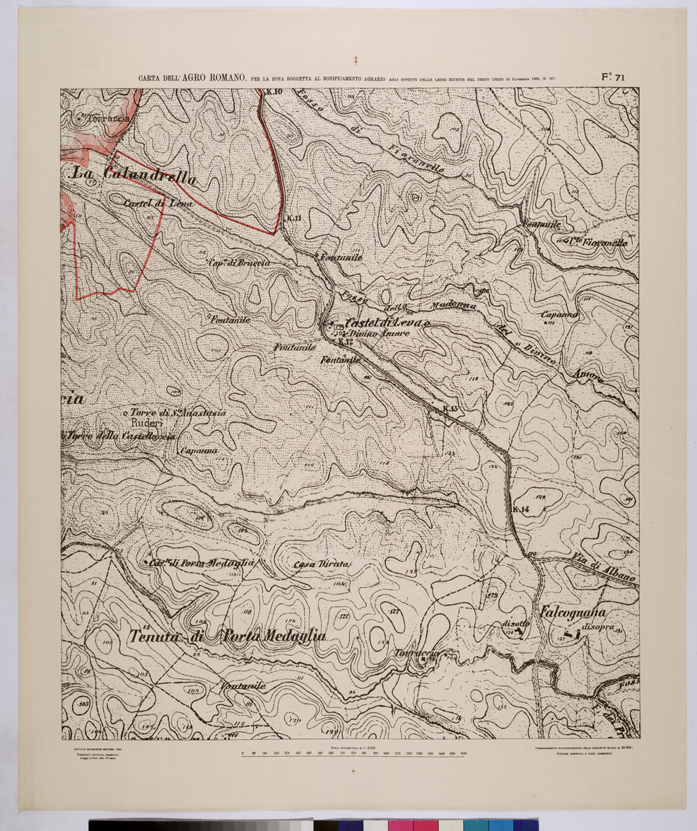 CARTA DELL'AGRO ROMANO NEL RAPPORTO DI 1:8.000 PER LA ZONA SOGGETTA AL BONIFICAMENTO AGRARIO AGLI EFFETTI DELLE LEGGI RIUNITE IN TESTO UNICO CON R.D. 10 NOVEMBRE 1905 N°647 - FOGLIO 71.