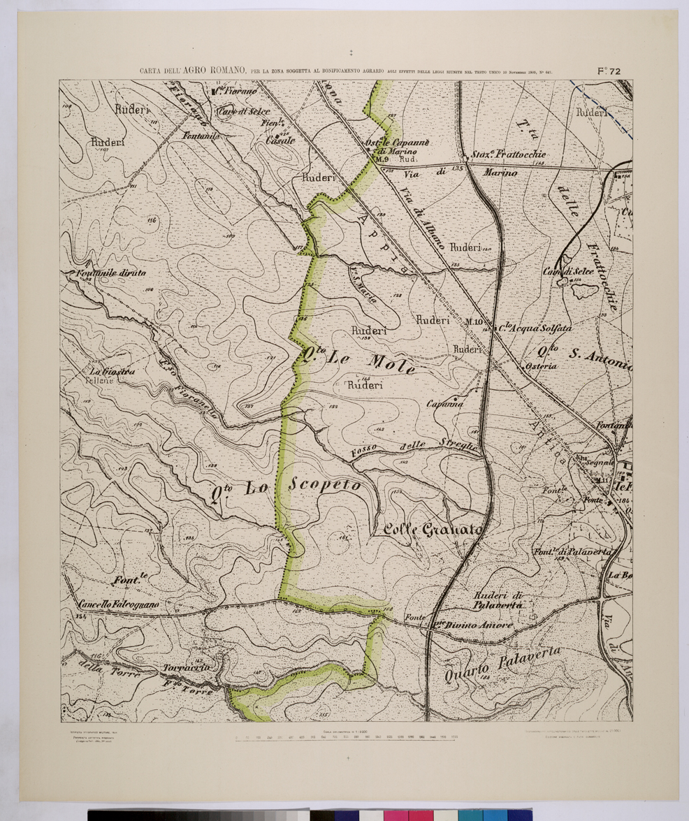 CARTA DELL'AGRO ROMANO NEL RAPPORTO DI 1:8.000 PER LA ZONA SOGGETTA AL BONIFICAMENTO AGRARIO AGLI EFFETTI DELLE LEGGI RIUNITE IN TESTO UNICO CON R.D. 10 NOVEMBRE 1905 N°647 - FOGLIO 72.