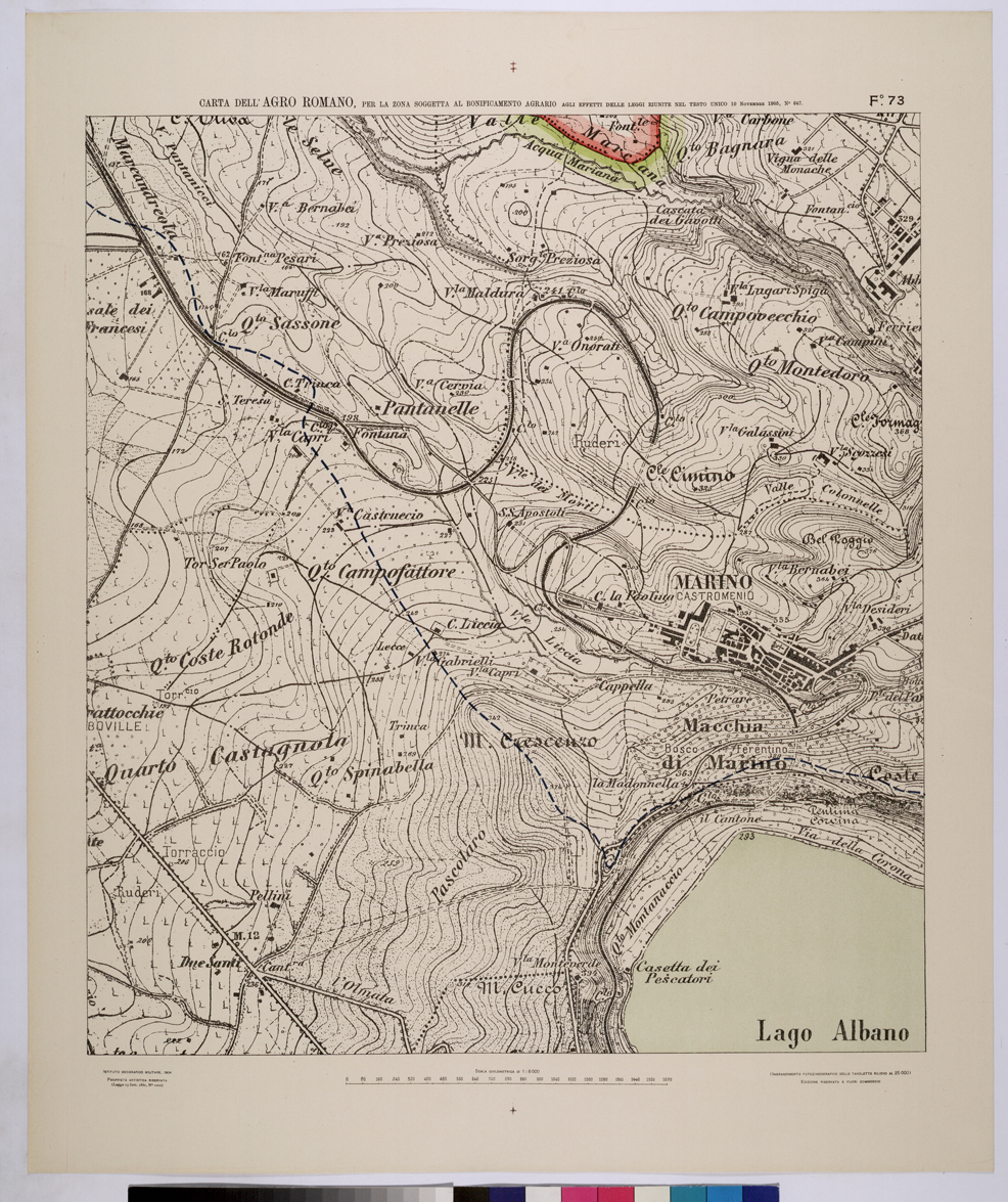 CARTA DELL'AGRO ROMANO NEL RAPPORTO DI 1:8.000 PER LA ZONA SOGGETTA AL BONIFICAMENTO AGRARIO AGLI EFFETTI DELLE LEGGI RIUNITE IN TESTO UNICO CON R.D. 10 NOVEMBRE 1905 N°647 - FOGLIO 73.