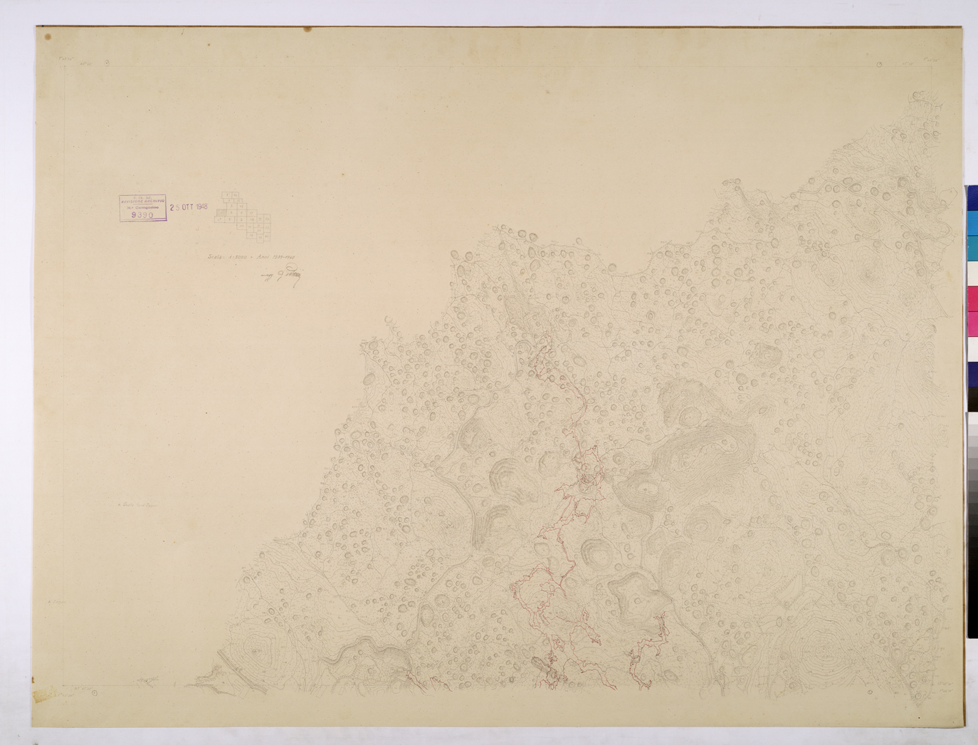 Per quanto concerne i lavori di allestimento cartografico, l´epoca successiva alla 2^ guerra mondiale può essere distinta in due periodi: quello del primo dopoguerra (1946-1953), durante il quale si dette inizio alla realizzazione della Carta d´Italia alla scala 1:25000 a tre colori (nero, bistro, azzurro) e quello relativo agli anni 1954-1965, caratterizzato dal compimento del rilievo alla scala 1:25000 di tutto il territorio italiano e dall´introduzione della cartografia “stanag” a 5 colori (ai tre prima ricordati si aggiungeva il rosso e il verde).