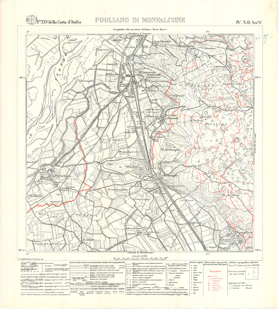 MONFALCONE E GRADISCA - FOGLIO XXV IV S.O. SEZIONE C. FOGLIANO DI MONFALCONE - Edizione con opere militari in rosso