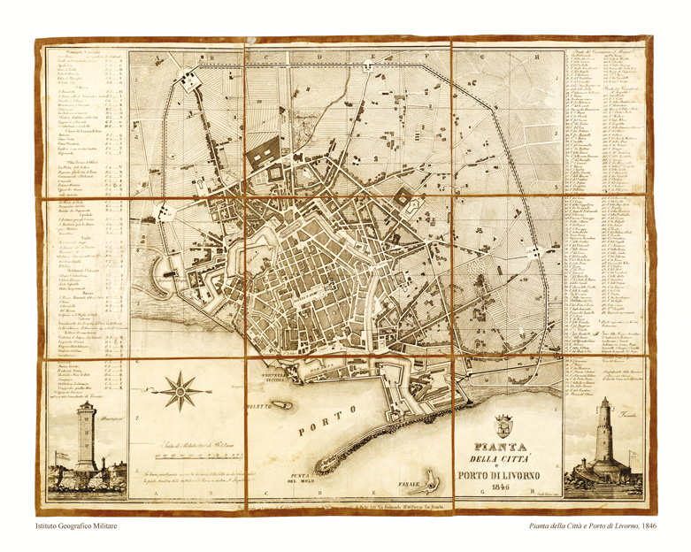 PIANTA DELLA CITTA' E PORTO DI LIVORNO 1846.