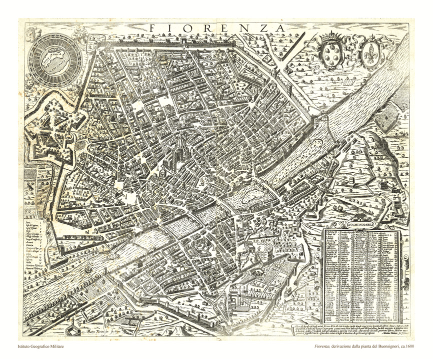 "CARTE E STAMPE ANTICHE, COPIA IN PRONTA CONSEGNA DI ELEMENTO DI CARTOGRAFIA STORICA INSERITO NEL CATALOGO DEI PRODOTTI IN VENDITA A17 REALIZZATO DALL'ORIGINALE CONSERVATO PRESSO L'ISTITUTO GEOGRAFICO MILITARE. Pianta prospettica incisa su rame, derivazione della pianta del Buonsignori. Foglio unico. E' orientata col nord spostato verso sinistra. V' è inserito l'elenco dei " Luoghi notabili ". FILE:B0007030"