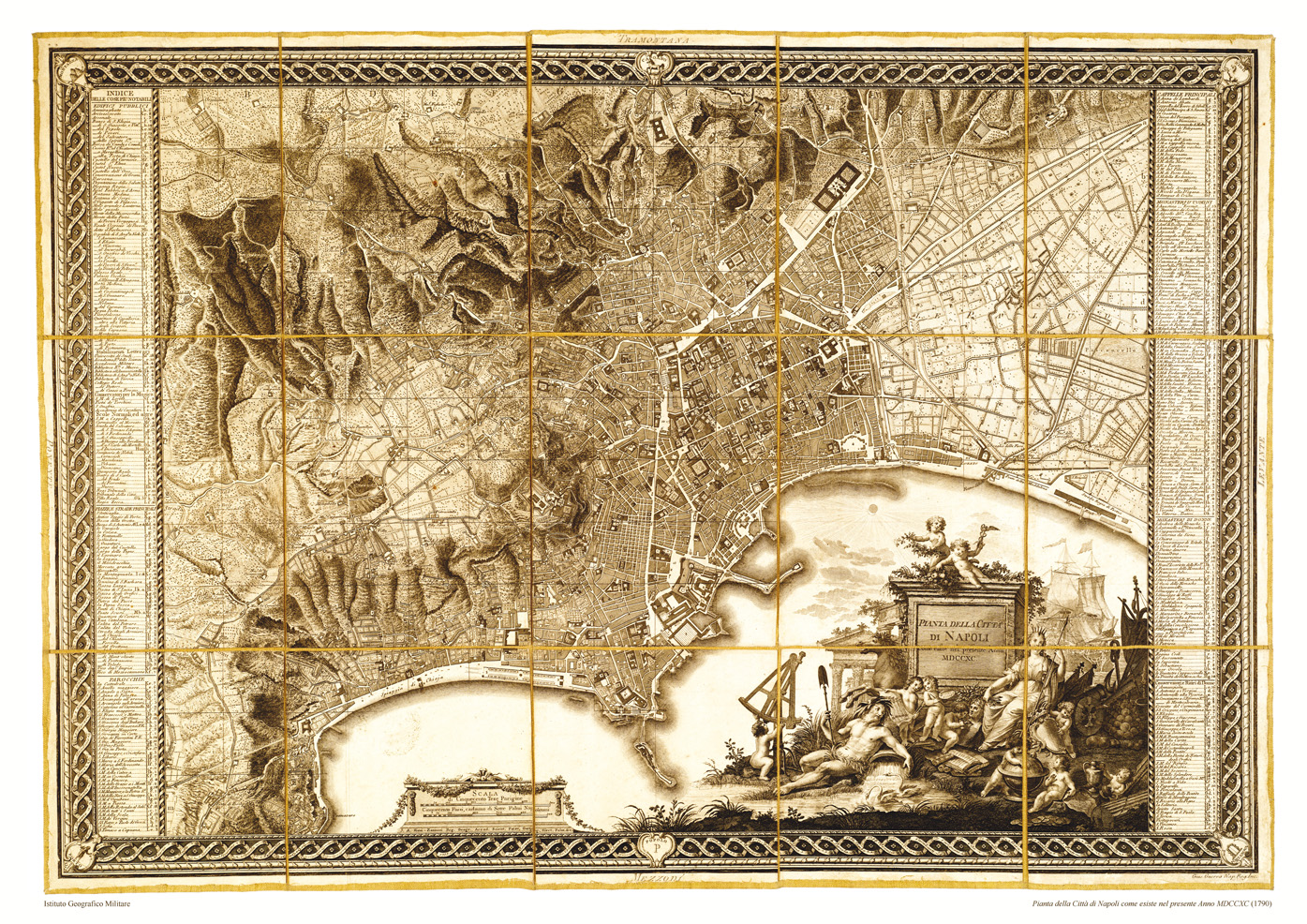 PIANTA DELLA CITTA' DI NAPOLI COME ESISTE NEL PRESENTE ANNO MDCCXC J. A. RIZZI-ZANNONI. REG. GEOGR. ACCAD. SCIENT. PATAV. GOETING. ELECT. PALAT. ecc.